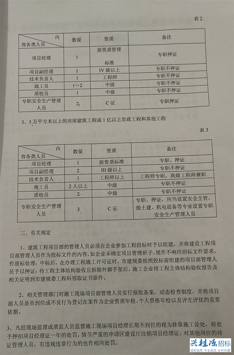 3、桂林建設(shè)與規(guī)劃委員會建規(guī)【2006】270號《關(guān)于調(diào)整建筑施工現(xiàn)場項(xiàng)目部管理的通知》詳見公告附件1。
